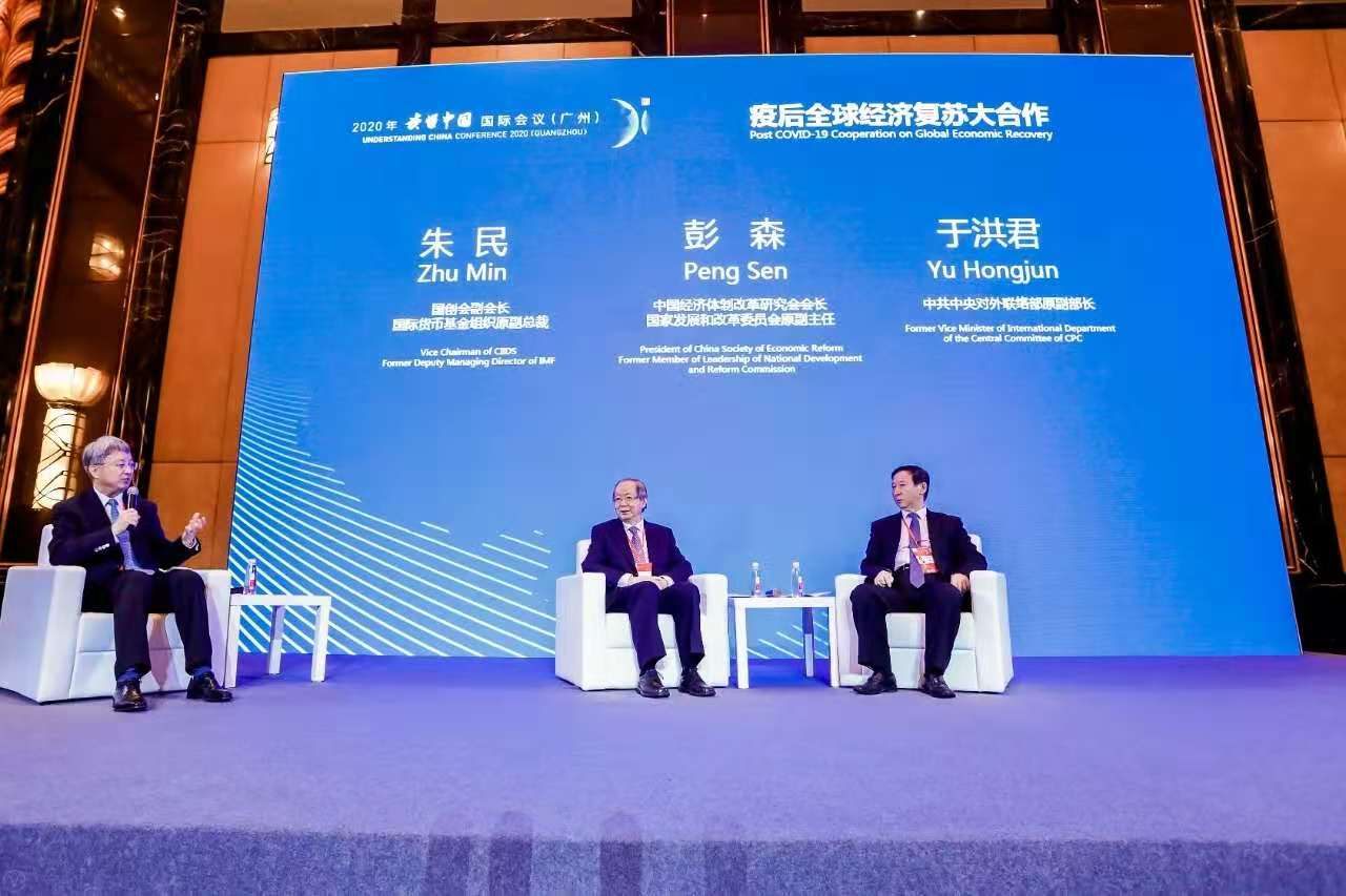 11月20日,2020年“讀懂中國”國際會議(廣州)在廣州開幕。習(xí)近平主席專門發(fā)來賀信。中共中央政治局委員、中宣部部長黃坤明在京通過視頻連線出席開幕式,宣讀習(xí)近平主席賀信并發(fā)表演講。中共中央政治局委員、廣東省委書記李希出席會議并作主旨演講。彭森會長出席在21日舉行的2020“讀懂中國”國際會議(廣州)以“疫后全球經(jīng)濟服務(wù)大合作”為主題的午餐專題對話會并發(fā)表演講。