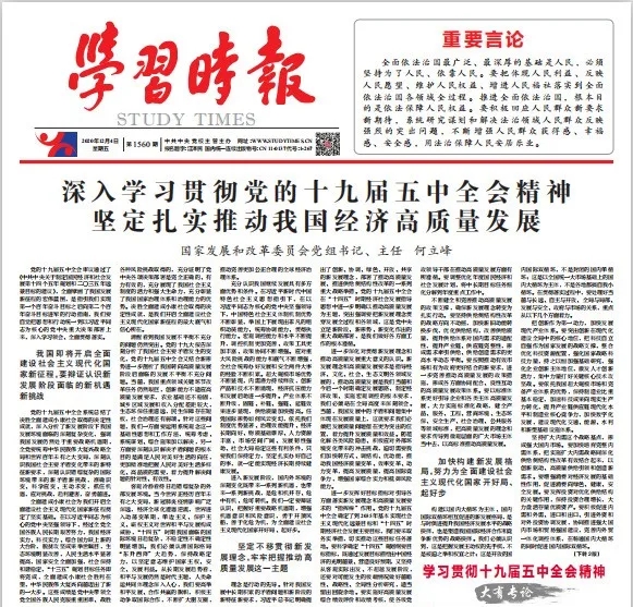 一分部署,九分落實(shí),黨的十九屆五中全會描繪的宏偉藍(lán)圖要靠全黨全國各族人民的辛勤工作和努力奮斗去實(shí)現(xiàn)。我們要緊密團(tuán)結(jié)在以習(xí)近平同志為核心的黨中央周圍,在黨中央集中統(tǒng)一領(lǐng)導(dǎo)下,深入學(xué)習(xí)貫徹習(xí)近平新時(shí)代中國特色社會主義思想,增強(qiáng)“四個(gè)意識”、堅(jiān)定“四個(gè)自信”、做到“兩個(gè)維護(hù)”,不忘初心、牢記使命,同心同德、頑強(qiáng)奮斗,不斷提高貫徹新發(fā)展理念、構(gòu)建新發(fā)展格局的能力和水平,為奪取全面建設(shè)社會主義現(xiàn)代化國家新勝利作出應(yīng)有的貢獻(xiàn)。