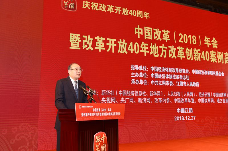 2018年12月27日,由中國經(jīng)濟(jì)體制改革研究會(huì)、中國經(jīng)濟(jì)改革研究基金會(huì)指導(dǎo),中國經(jīng)濟(jì)體制改革雜志社主辦,中共江陰市委、江陰市人民政府承辦的“慶祝改革開放40周年——中國改革(2018)年會(huì)暨改革開放40年地方改革創(chuàng)新40案例高層研討會(huì)”在江蘇省江陰市召開。
