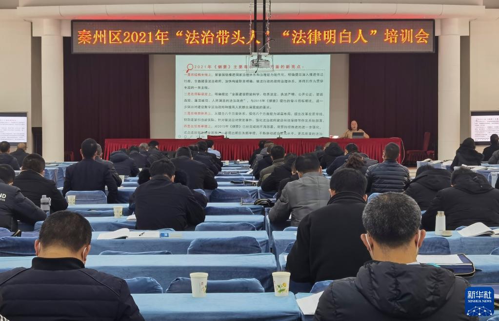 甘肅省天水市秦州區(qū)舉辦2021年“法律明白人”培訓(xùn)會(12月8日攝)。新華社發(fā)