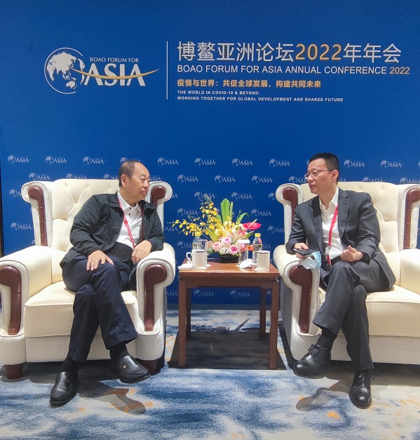4月22日下午,岀席博鰲亞洲論壇2022年年會(huì)的我會(huì)常務(wù)副會(huì)長(zhǎng)兼秘書(shū)長(zhǎng)趙艾,應(yīng)約與博鰲亞洲論壇秘書(shū)長(zhǎng)李保東在博鰲亞洲論壇國(guó)際會(huì)議中心會(huì)談,就我會(huì)與博鰲亞洲論壇秘書(shū)處合作開(kāi)展改革開(kāi)放重大問(wèn)題研究及組織相關(guān)學(xué)術(shù)交流活動(dòng)等交換意見(jiàn)。