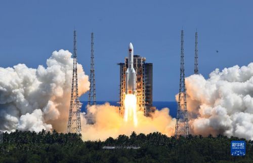 搭載問天實驗艙的長征五號B遙三運載火箭,在我國文昌航天發(fā)射場點火發(fā)射(2022年7月24日攝)。新華社記者 李剛 攝