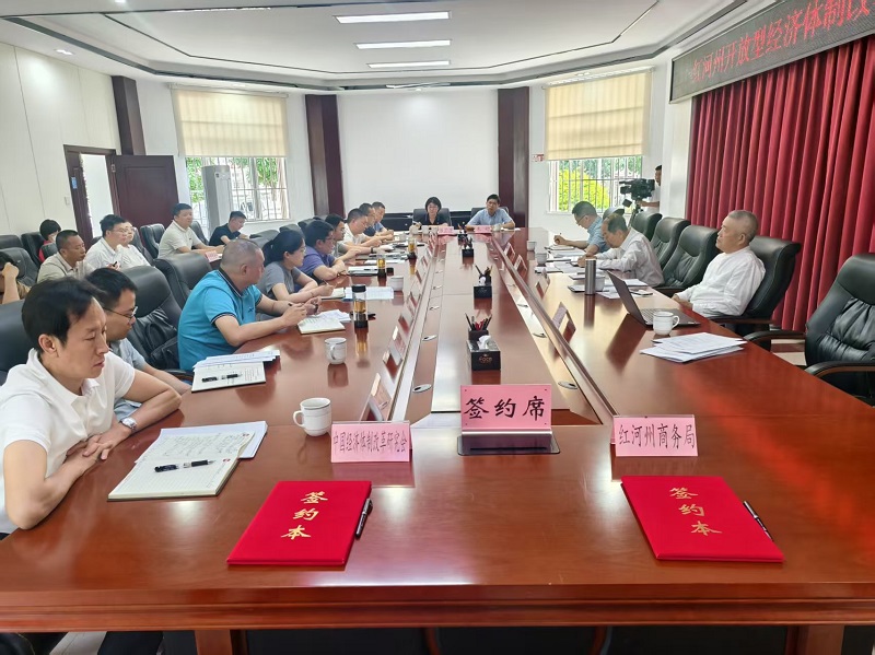 在紅河州調(diào)研期間,趙艾以“擴(kuò)大沿邊開放是推進(jìn)中國式現(xiàn)代化的重要任務(wù)”為題,為州委書記趙瑞君主持的州委中心組集中學(xué)習(xí)做專題報告。州委副書記、州長羅萍等州委理論學(xué)習(xí)中心組成員出席,州委、州政府有關(guān)領(lǐng)導(dǎo)、相關(guān)部門負(fù)責(zé)同志列席,全州13縣(市)主要負(fù)責(zé)同志以視頻形式聽講。副州長許高紅主持召開“紅河州開放型經(jīng)濟(jì)體制改革專項小組”專題會,州委政研室、州商務(wù)局、開放辦、交通運(yùn)輸局、農(nóng)業(yè)農(nóng)村局、外辦、蒙自海關(guān)、稅務(wù)局、金融監(jiān)管局、人民銀行紅河支行等單位負(fù)責(zé)同志參加并發(fā)言,向調(diào)研組介紹了有關(guān)情況。紅河州商務(wù)局出面與我會“一帶一路”建設(shè)專委會簽訂了合作框架協(xié)議。調(diào)研組還到云南錫業(yè)化工材料有限公司、云南美科新能源發(fā)展有限公司、蒙自經(jīng)開區(qū)管委會、元陽縣鄉(xiāng)村振興產(chǎn)業(yè)園、云南自貿(mào)試驗(yàn)區(qū)紅河片區(qū)(河口邊合區(qū))、河口口岸等實(shí)地調(diào)研。