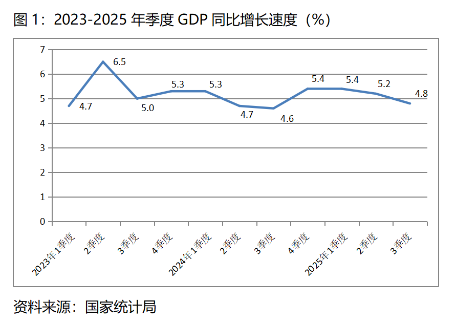圖1:2023-2025年季度GDP同比增長速度(%)