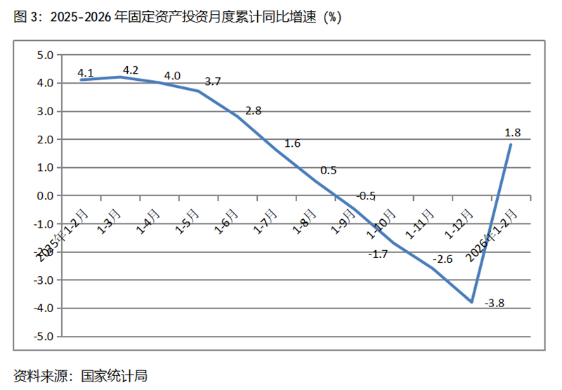 1-2月份,固定資產(chǎn)投資累計增速快于或持平固定資產(chǎn)投資總額增長1.8%的行業(yè)共6個,即農(nóng)林牧漁業(yè)增長16.6%,電力、熱力、燃氣及水的生產(chǎn)和供應(yīng)業(yè)增長13.1%,采礦業(yè)增長13.0%,交通運輸、倉儲和郵政業(yè)增長9.1%,水利、環(huán)境和公共設(shè)施管理業(yè)增長8.3%,制造業(yè)增長3.1%。
