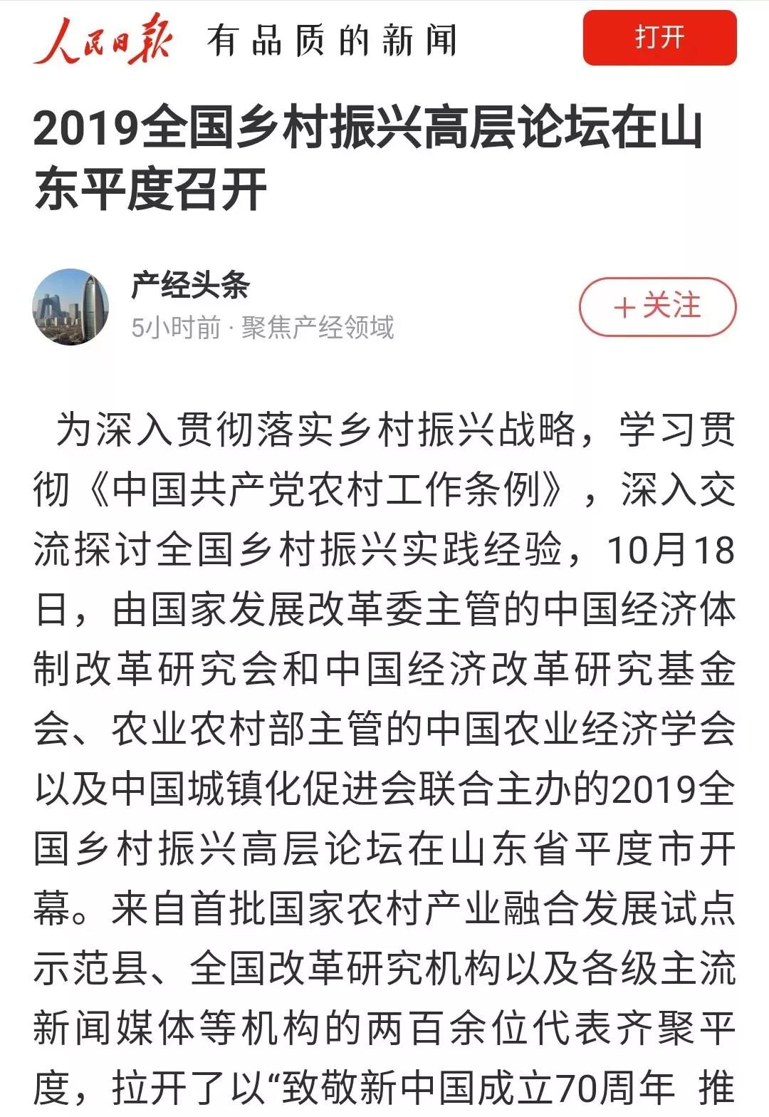 10月18日,中國經(jīng)濟(jì)體制改革研究會、中國農(nóng)業(yè)經(jīng)濟(jì)學(xué)會、中國經(jīng)濟(jì)改革研究基金會、中國城鎮(zhèn)化促進(jìn)會聯(lián)合主辦的2019全國鄉(xiāng)村振興高層論壇在平度市開幕,開啟了以“推動農(nóng)村產(chǎn)業(yè)融合 夯實(shí)振興產(chǎn)業(yè)基礎(chǔ)”為主題的大討論。論壇上,中國經(jīng)濟(jì)體制改革研究會宣布把平度市列為博士后科研工作站調(diào)研基地,并授予平度“中國經(jīng)濟(jì)體制改革研究會博士后科研工作站調(diào)研基地”標(biāo)牌。