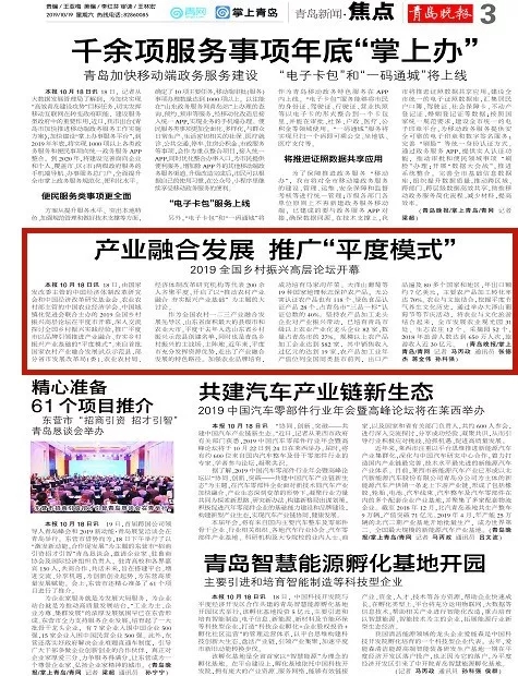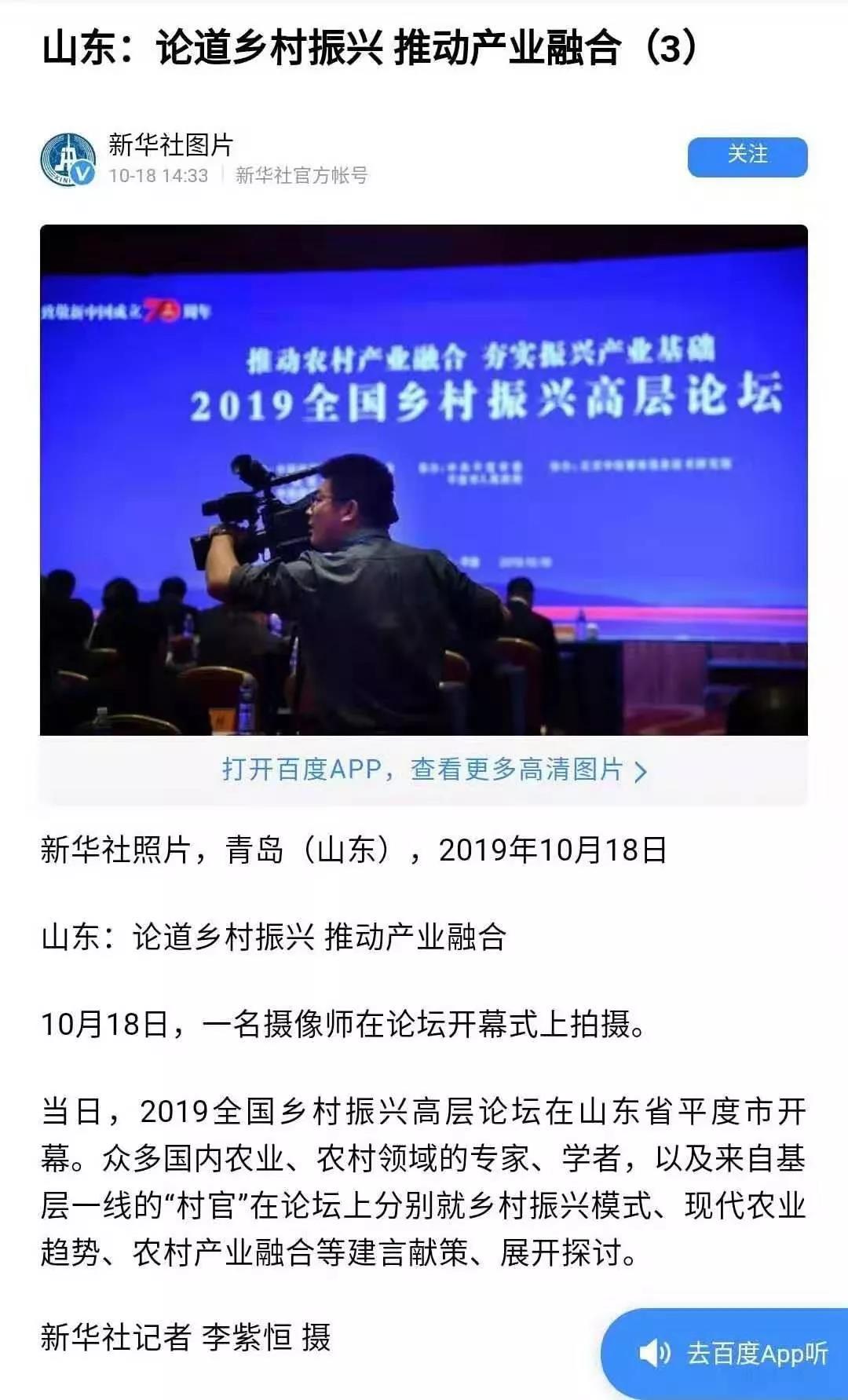 這場在平度舉行的國家級高層論壇受到各級新聞媒體聚焦關(guān)注,中央廣播電視總臺、人民日報(bào)、新華社、經(jīng)濟(jì)日報(bào)、農(nóng)民日報(bào)、中國經(jīng)濟(jì)時(shí)報(bào)、山東廣播電視臺、大眾日報(bào)、青島廣播電視臺、青島日報(bào)等20余家媒體記者到現(xiàn)場采訪報(bào)道。10月18日上午,青島廣播電視臺藍(lán)睛客戶端現(xiàn)場直播論壇盛況,在線觀看已突破7萬人次。目前,新華社、人民網(wǎng)、鳳凰網(wǎng)、青島廣播電視臺、青島日報(bào)、齊魯晚報(bào)、青島早報(bào)、青島晚報(bào)、半島都市報(bào)、商周刊、大眾網(wǎng)、中國山東網(wǎng)、青島新聞網(wǎng)等10余家媒體第一時(shí)間已刊發(fā)相關(guān)報(bào)道。